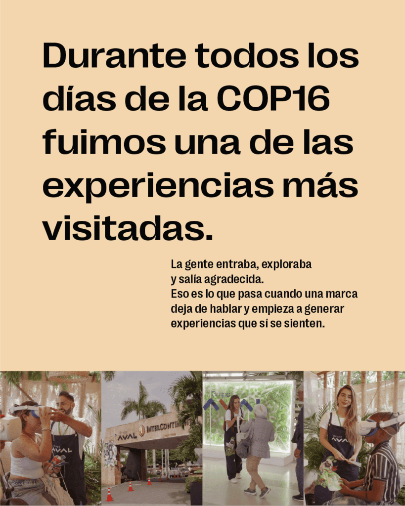 Creamos una experiencia para llevar la biodiversidad de Colombia al centro de la ciudad. Una propuesta inmersiva en VR que permitió recorrer páramos, desiertos y montañas, conectando a miles de personas con el territorio y la esencia de la marca.